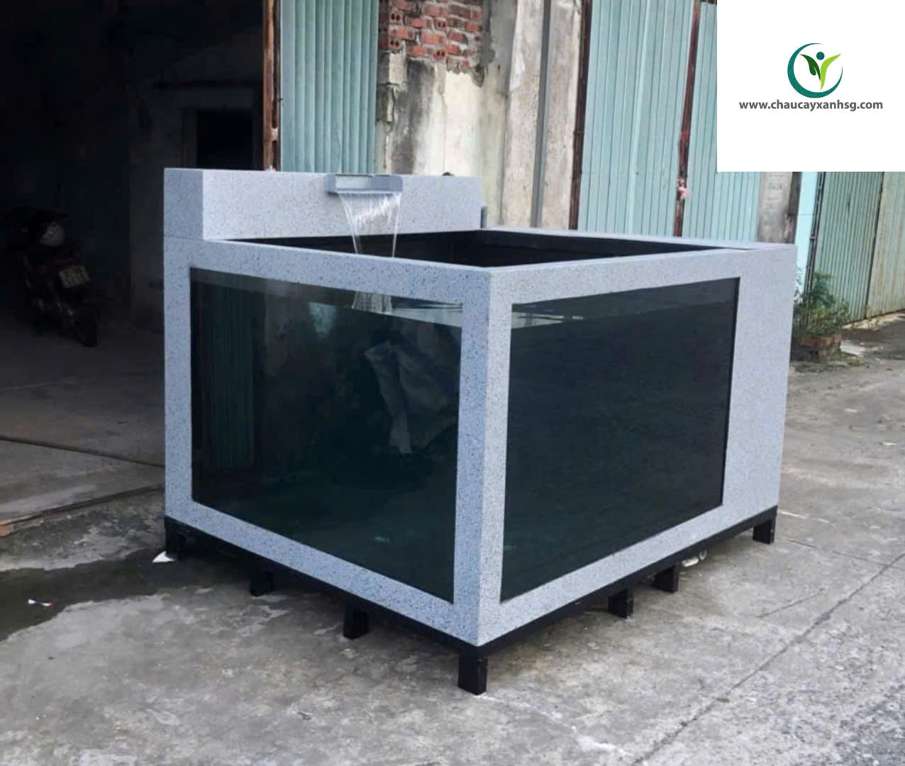 Bể cá composite theo yêu cầu được sản xuất trực tiếp tại xưởng Chậu Cây Xanh Sài Gòn, với ưu điểm siêu bền – chống thấm – nhẹ – không bị ăn mòn.