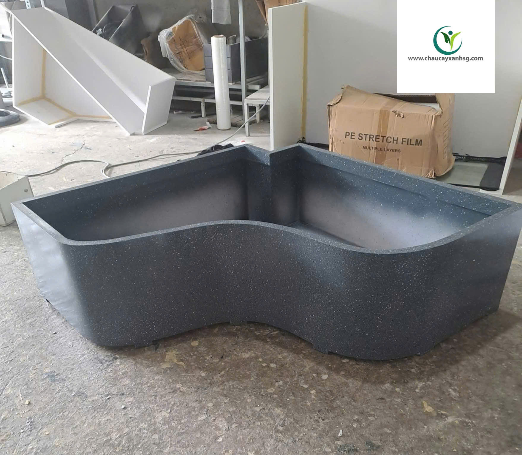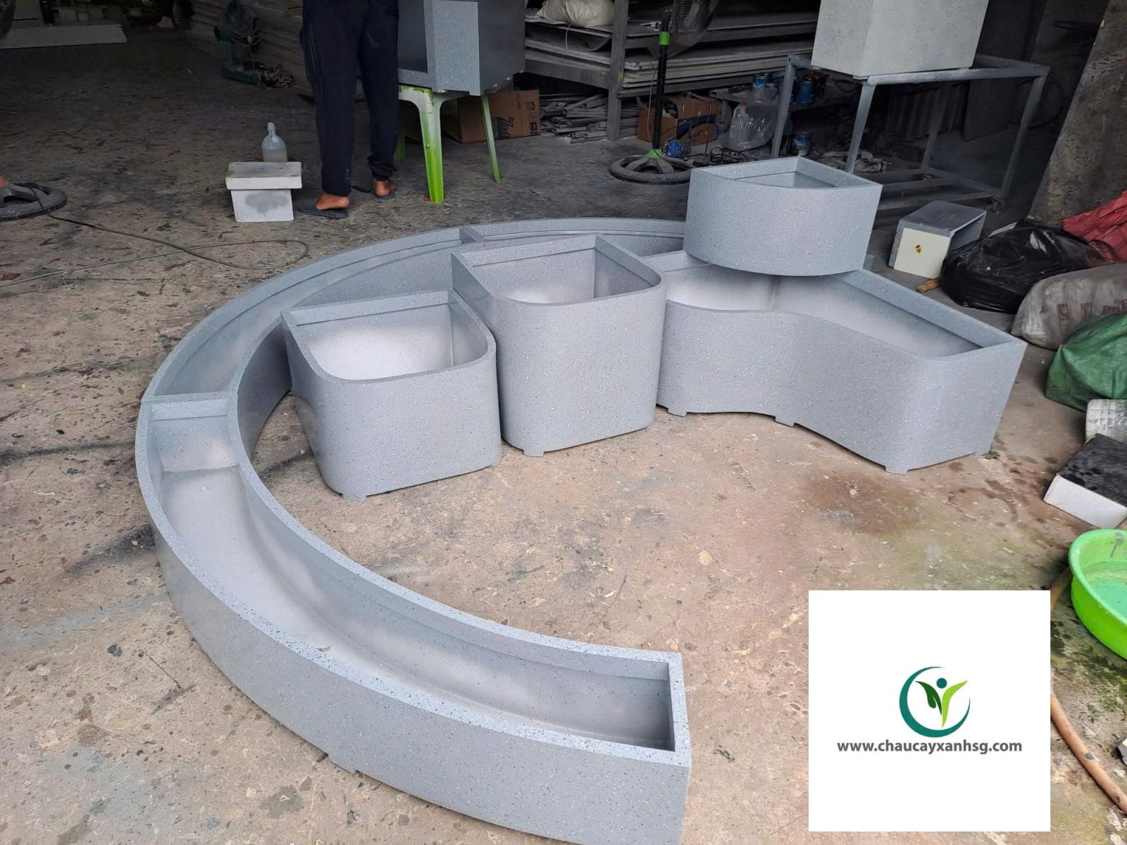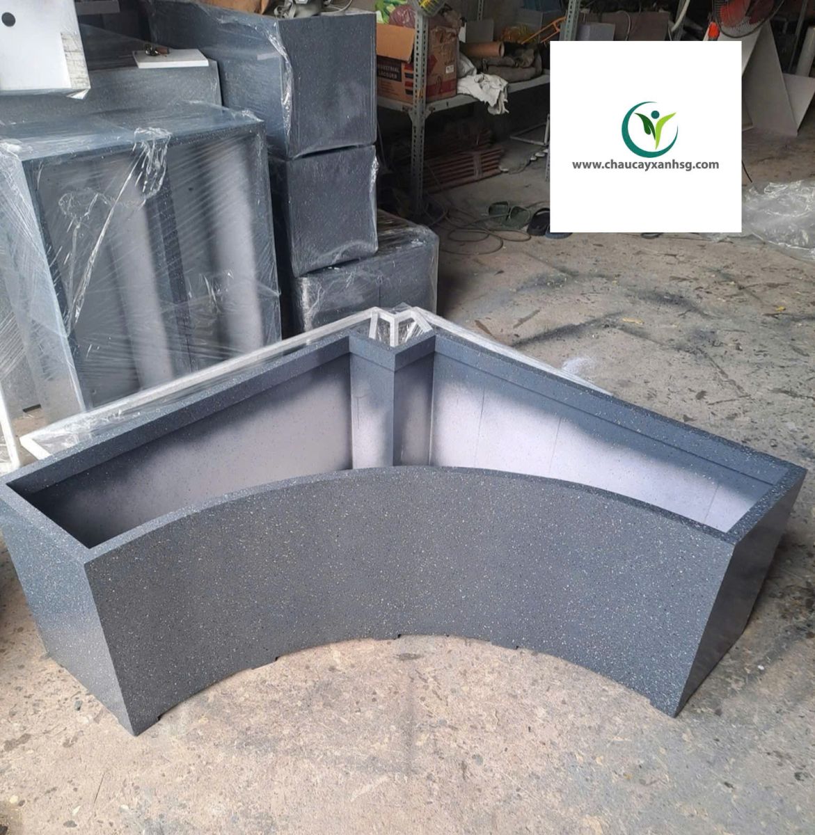 Xưởng Chậu Cây Xanh Sài Gòn chuyên thiết kế và sản xuất chậu cây composite theo yêu cầu với đầy đủ kiểu dáng: hình chữ nhật, hình tròn, hình vuông.