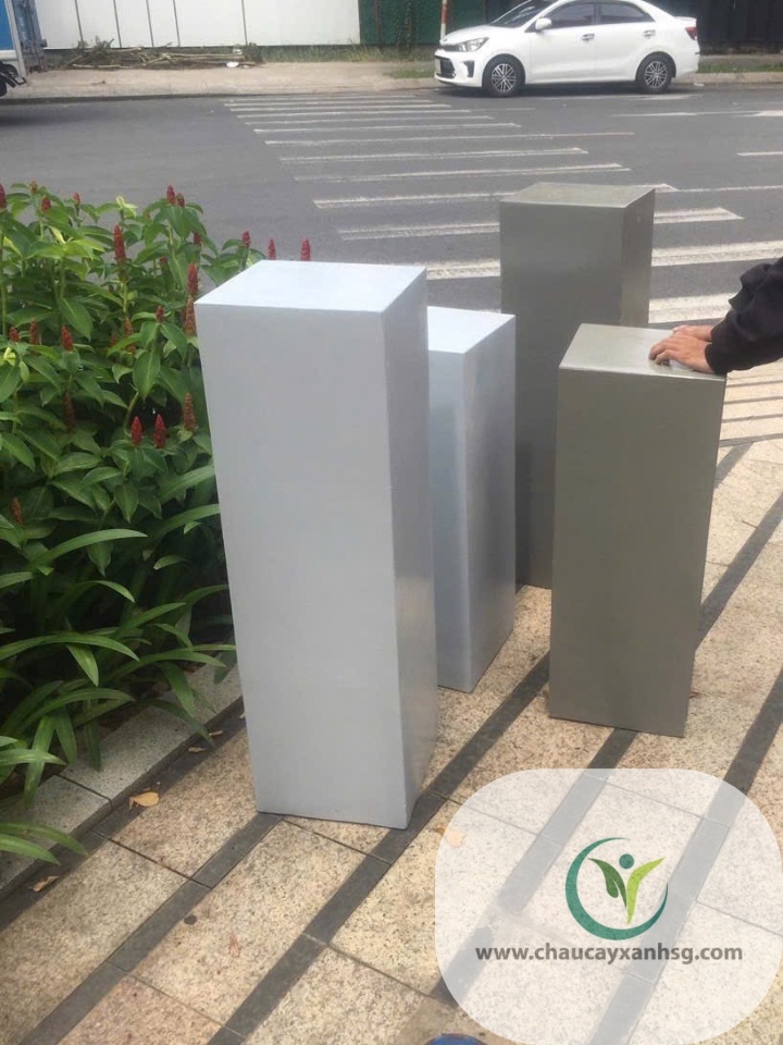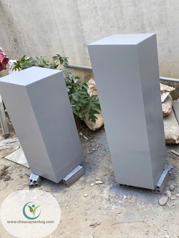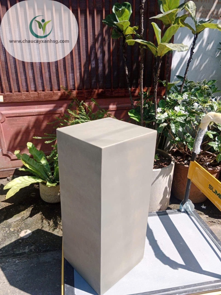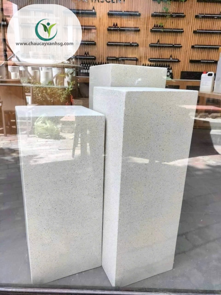 Đôn Trụ Vuông Terrazzo được làm từ xi măng đá mài nguyên khối, phủ bóng chống thấm, bền bỉ và dễ vệ sinh.